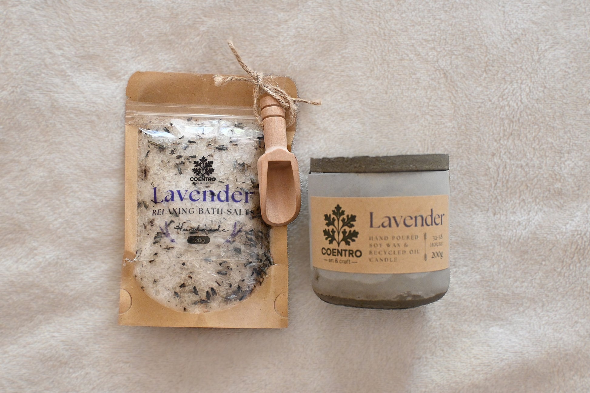 Lavender Candle + Bath Salts Gift Bundle – Relaxation Duo